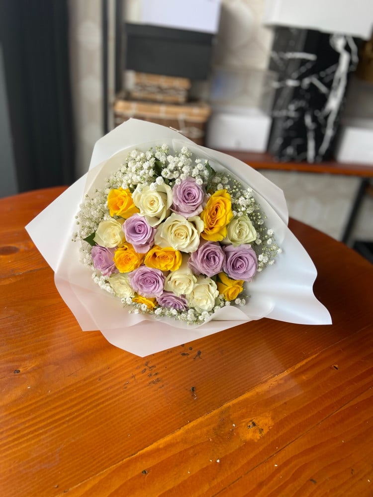 تشكيلة جميلة من الورد الجوري المستورد مع جبسفيليا