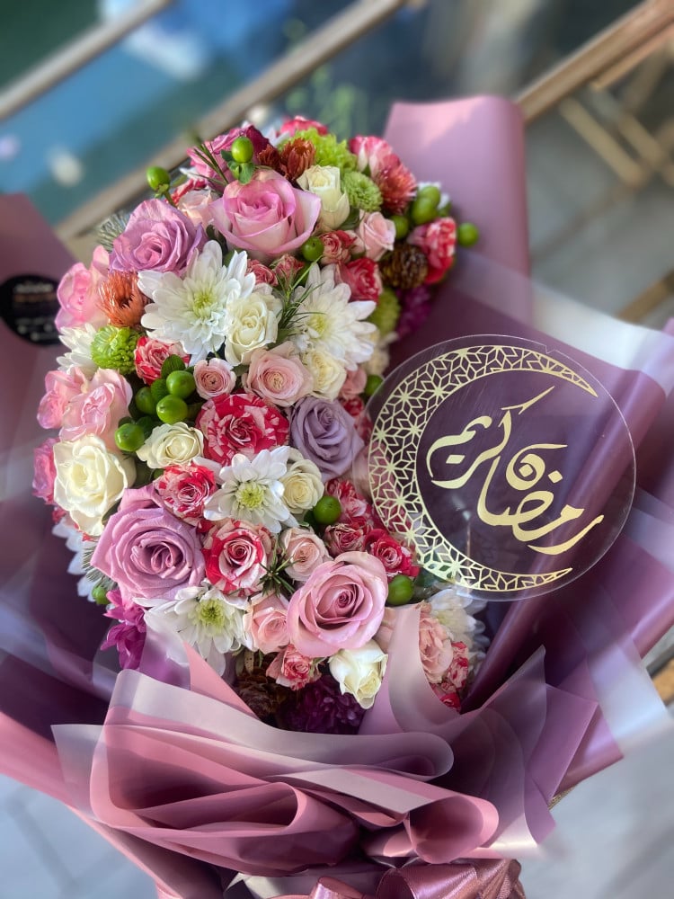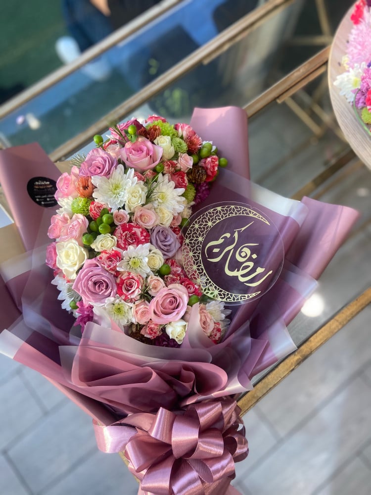 تشكيلة جميلة من الورد المستورد على شكل هلال