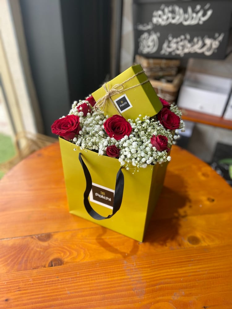 تشكيلة جميلة من الورد الأحمر الجوري و الجبسفيليا المستورد
